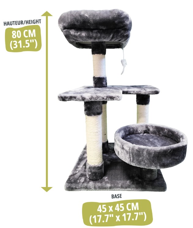 Votre chat fait la vie dure à vos meubles? Tous les poteaux sont recouverts de sisal afin qu’il puisse faire ses griffes.