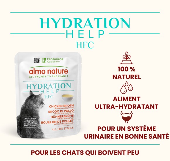 Hydration Help est le supplément alimentaire parfait pour les chats de toutes tailles et de tous âges, y compris les chats stérilisés. Il joue un rôle clé dans le soutien de l’hydratation, du bien-être général et de la santé urinaire. Il est 100% naturel, sans additifs, sans céréales, sans gluten et sans OGM.