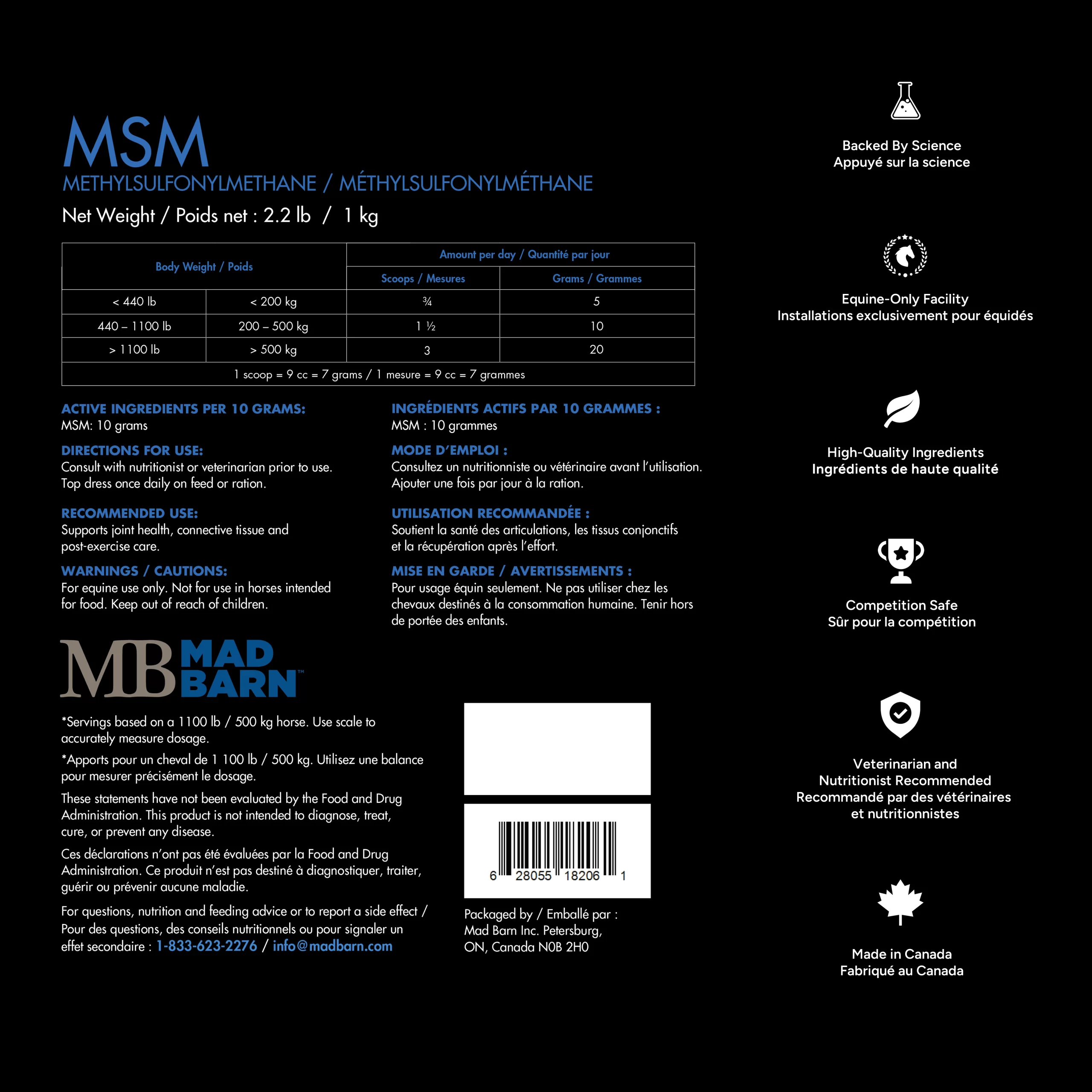 MADBARN – MSM Supplément pour chevaux