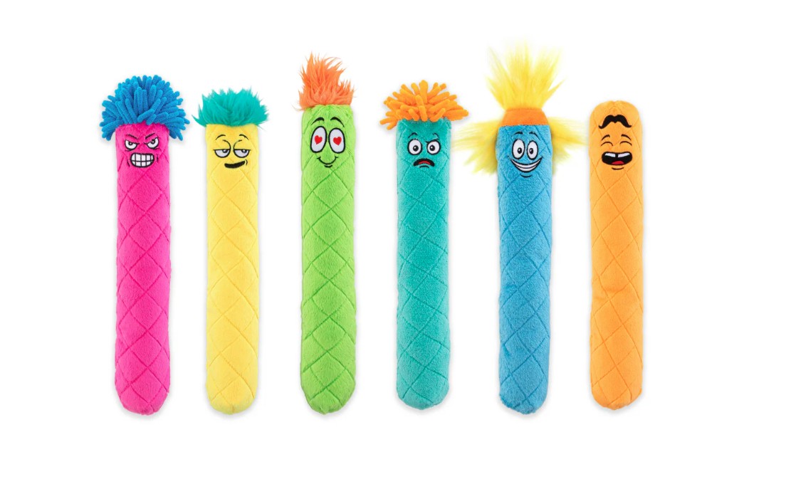 les Tuff Fry Guys sont doublés de coutures en losanges qui empêchent le tissu de se déchirer, lui conférant ainsi une durabilité, une résistance et une longévité accrues. Froissez, couinez, gigotez et rapportez avec ces six personnalités « tuff » tout en stimulant les chiens dans des jeux interactifs et indépendants. Leur forme classique en forme de bâton est idéale pour rapporter et tirer.