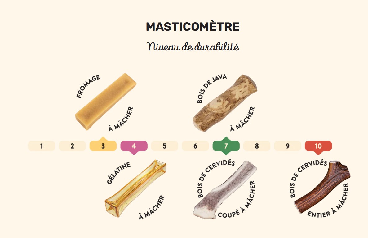 Il est important de choisir le bon format en fonction du poids, de la race et du style de mastication de votre chien.
