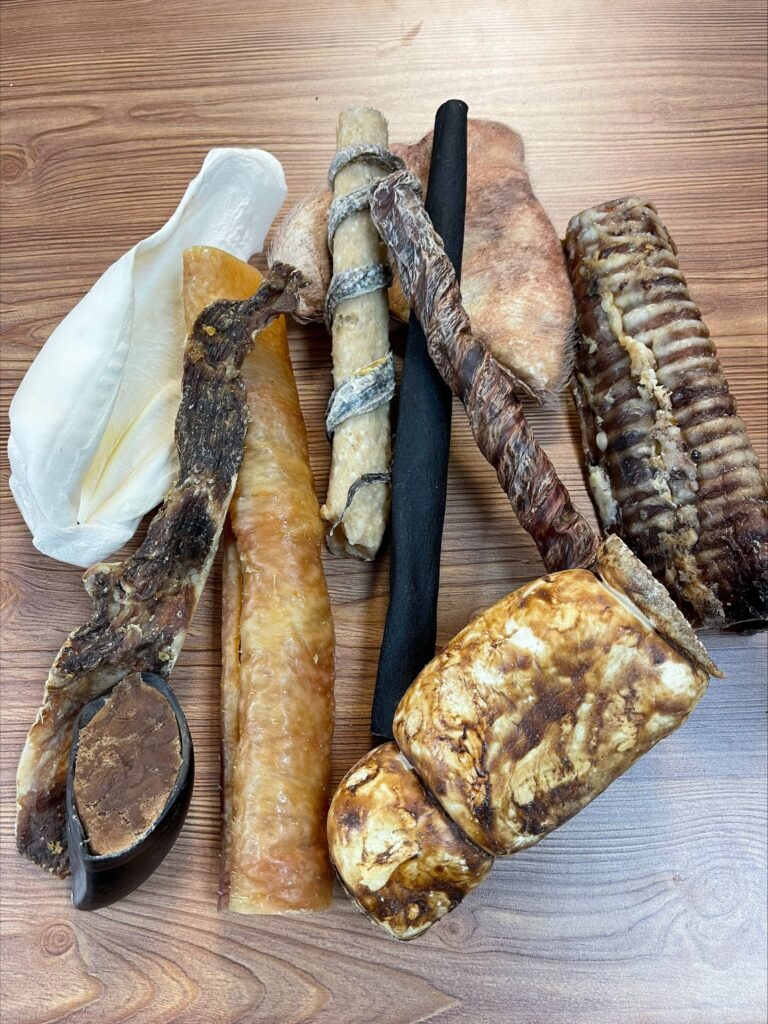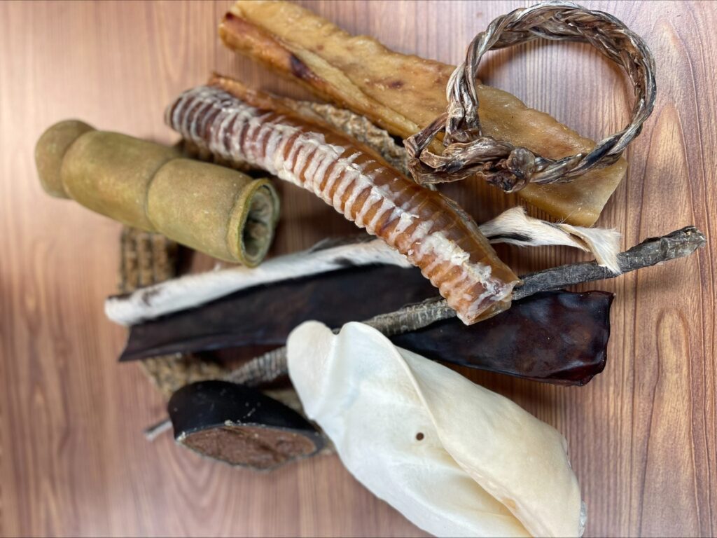 Gâteries 100% naturelles à gruger de porc, bœuf, poisson, agneau, buffle d’eau…