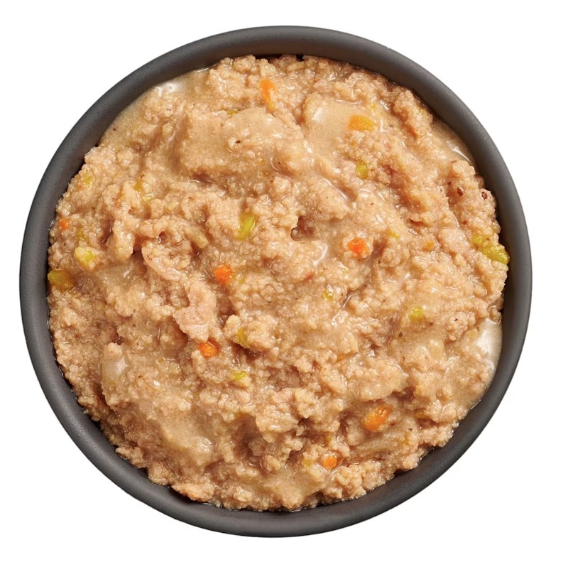 Ingrédients : poulet, bouillon de poulet, bouillon de saumon, saumon, canard, pois, carottes, citrouille, tapioca, tripolyphosphate de sodium, graines de lin, canneberges, sel, huile de microalgues marines, camomille, L-tryptophane.